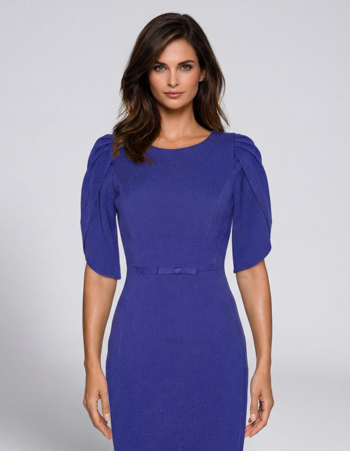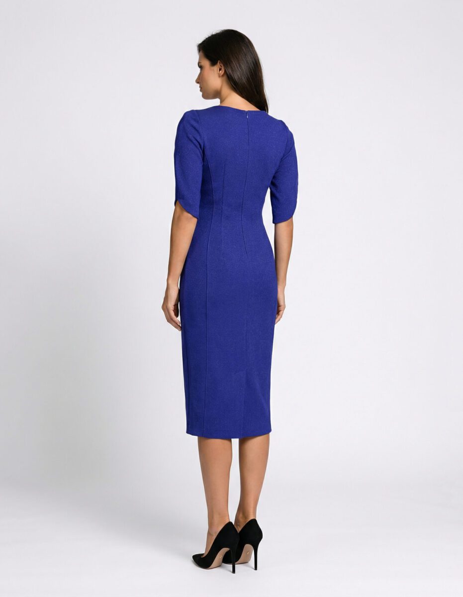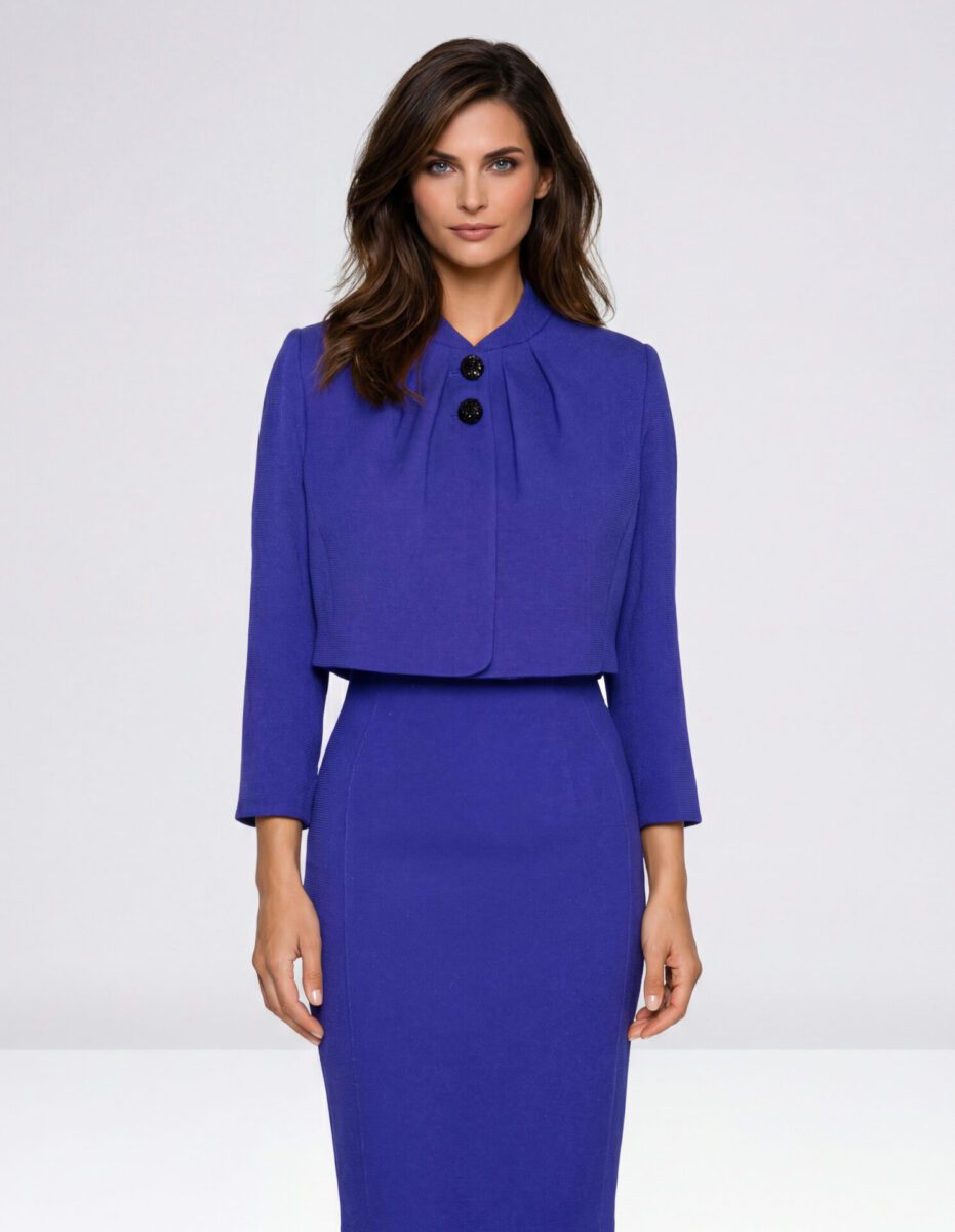 Compleu elegant compus din rochie midi cambrată și sacou scurt, perfect pentru ținute office sau evenimente formale. Croiala feminină evidențiază silueta, iar nuanța albastru regal oferă un look rafinat și modern.
